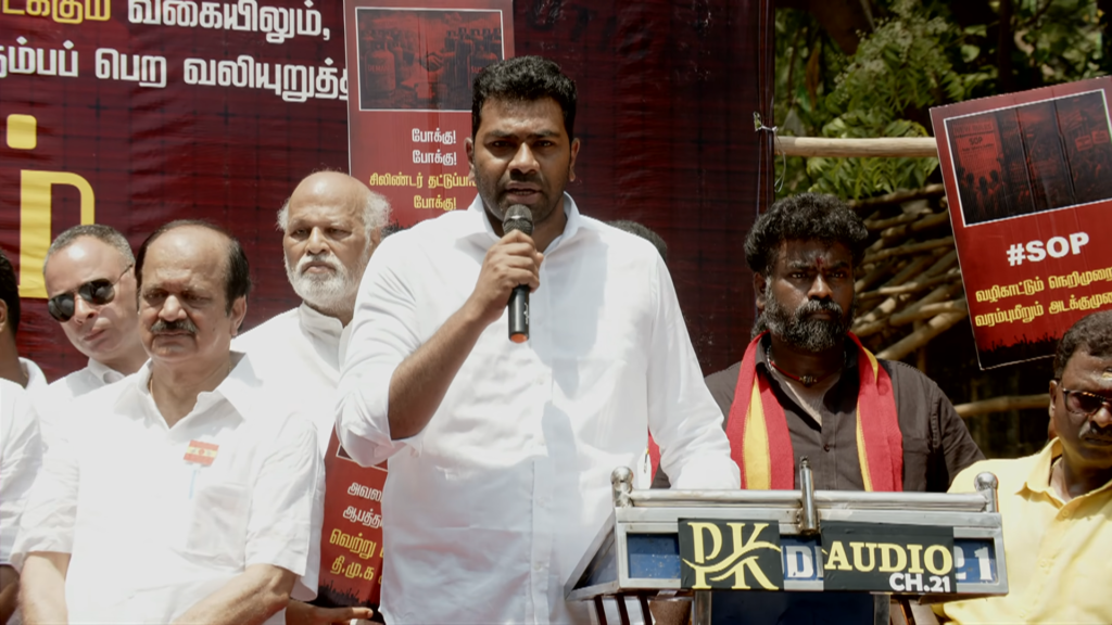 சென்னையில் தமிழக வெற்றிக் கழகத்தின் சார்பில் சாதிவாரி கணக்கெடுப்பு உள்ளிட்ட கோரிக்கைகளை வலியுறுத்தி ஆர்ப்பாட்டம் ( மார்ச் 12) நடைபெற்றது.ஆர்பாட்டத்தில் தவெக தேர்தல் பிரசார மேலாண்மைப் பொதுச் செயலாள ஆதவ் அர்ஜூனா கலந்து கொண்டு பேசினார் .