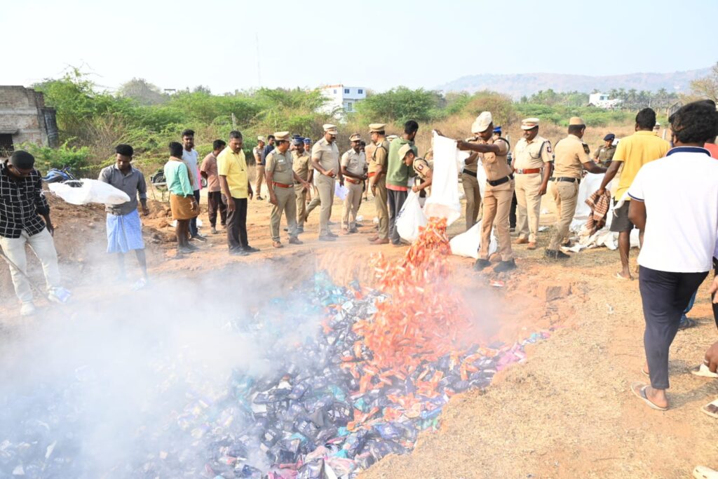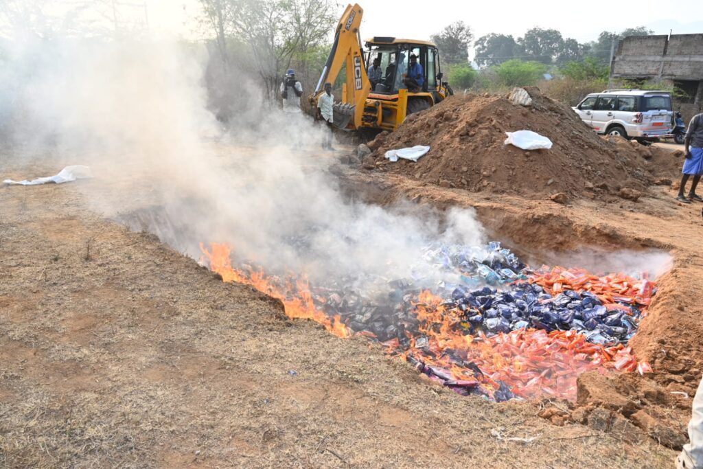 வேலூர் மாவட்டத்தில், கடந்த ஆண்டுகளில் பதிவுசெய்யப்பட்ட 18 `குட்கா’ வழக்குகளில் 1,765 கிலோ எடையிலான குட்கா பொருள்கள் பறிமுதல் செய்யப்பட்டிருந்தன. இதன் மதிப்பு சுமார் 17 லட்சம் ரூபாய் என்கிறது போலீஸ். இந்த போதைப் பொருள்களை நீதிமன்ற உத்தரவின்பேரில், பாதுகாப்பான முறையில் அழிக்க வடக்கு மண்டல ஐ.ஜி அஸ்ரா கர்க் அறிவுறுத்தினார்.